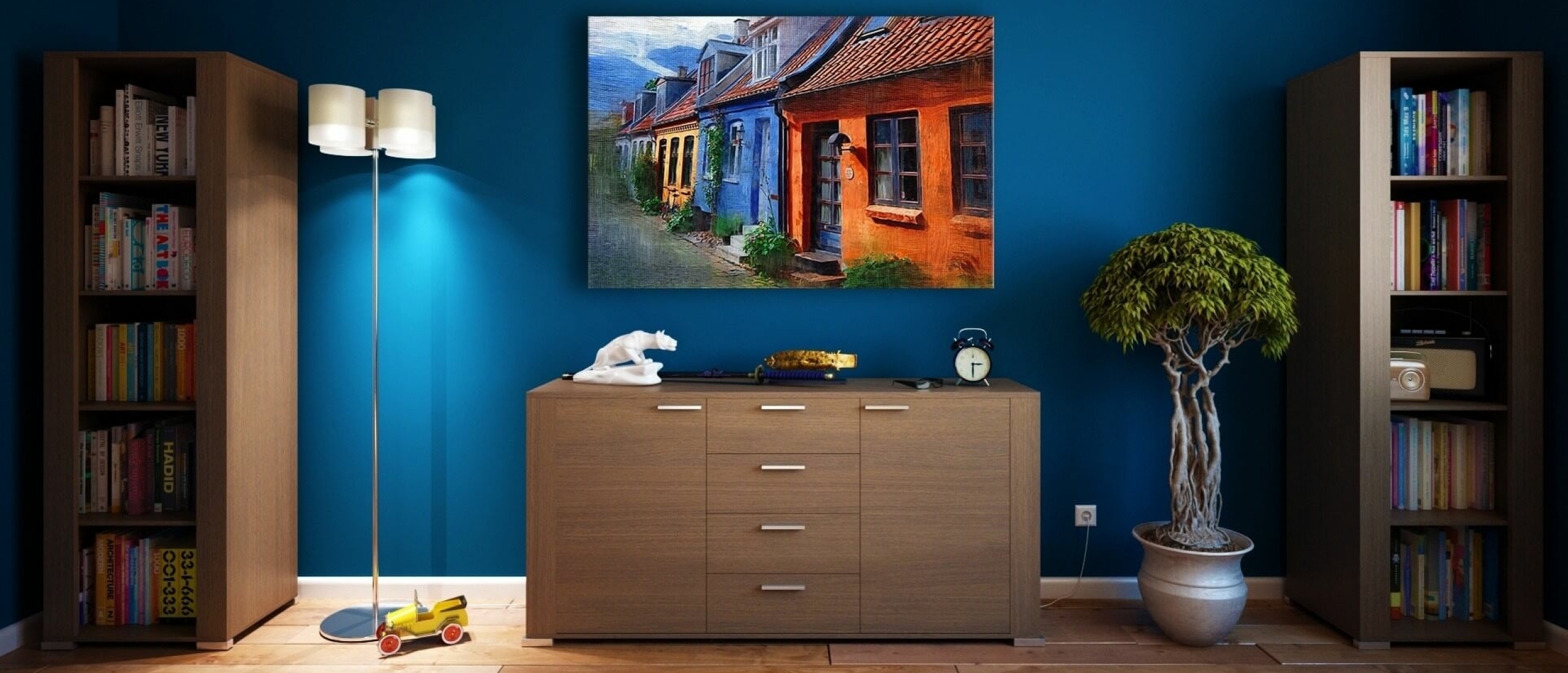 Donkere kleuren, veel verschillende tinten bij elkaar en drukke prints laten een ruimte kleiner lijken. Lichte kleuren maken een ruimte juist groter. Kies dus voor lichte kleuren als je de studentenkamer gaat inrichten. Voor een goede balans kun je de 60-30-10 regel gebruiken.